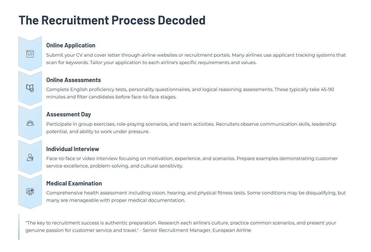 From training requirements to recruitment success, this comprehensive resource (20+ pages) gathers all the essential information you need to join Europe’s leading airlines.
