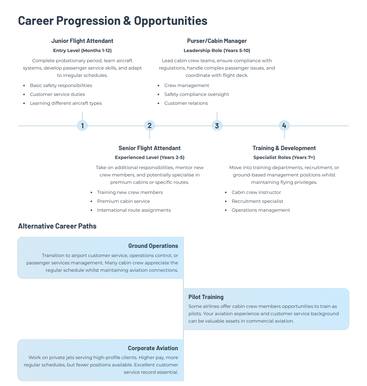 Career Path & Opportunities: from Junior Cabin Crew to Purser, Instructor, or VIP Corporate roles
